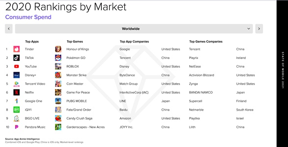 - 事实上,2020年对两个品牌的主打游戏产品来说都是具有里程碑含义的一年——虽然只在中国大陆运营,《王者荣耀》仍成为全球收入最高的手游,《Pokémon GO》紧随其后,排名第二。这两款游戏都在2020抢手游戏收入榜中收成了它们的最佳体现。